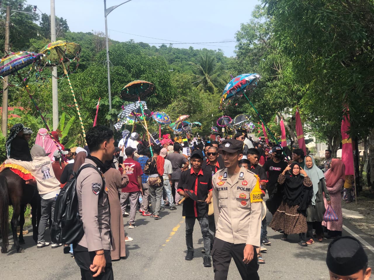 Polres Majene – Dalam rangka memperingati Maulid Nabi Muhammad SAW 1447 H sekaligus penamatan Al-Quran dan wisuda santri-santriwati TPA Alauddin Salubulo, Polsek Sendana melaksanakan pengamanan ketat pada kegiatan Pawai Kuda Hias Messawe Totamma yang berlangsung di Dusun Dalubulo, Desa Tubo, Kecamatan Tubo Sendana, Kabupaten Majene, Sabtu (15/11/25).