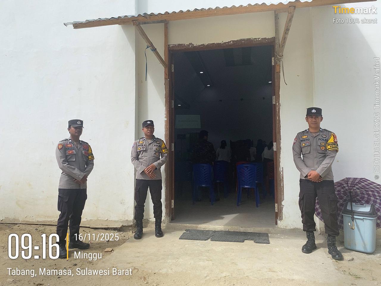 POLRES MAMASA — Pengamanan kegiatan ibadah Minggu di Gereja Toraja Mamasa Klasis Tabang, Jemaat Sion Ladi, Kecamatan Tabang, berjalan aman, tertib, dan kondusif pada Minggu (16/11/2025). Tiga personel Polri yang ditugaskan, yaitu Briptu Misto Heriyon, Briptu Ricky Sanjaya, dan Briptu Taufik Hidayat, hadir sejak pagi untuk memastikan seluruh rangkaian ibadah berlangsung tanpa gangguan.