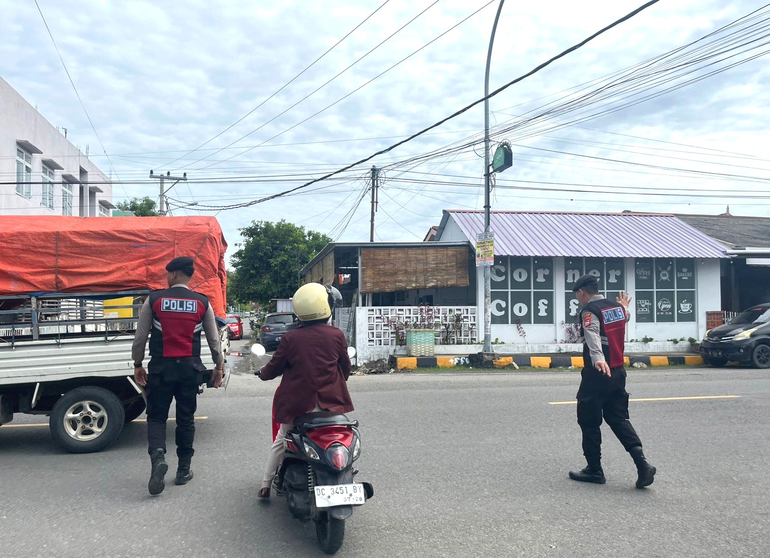 Selain melakukan pemantauan situasi keamanan, personel Samapta juga turut membantu kelancaran arus lalu lintas dengan melakukan pengaturan di beberapa titik yang mengalami kepadatan kendaraan. Petugas terlihat sigap membantu para pengguna jalan, termasuk pejalan kaki dan pengendara yang memerlukan bantuan saat melintas.