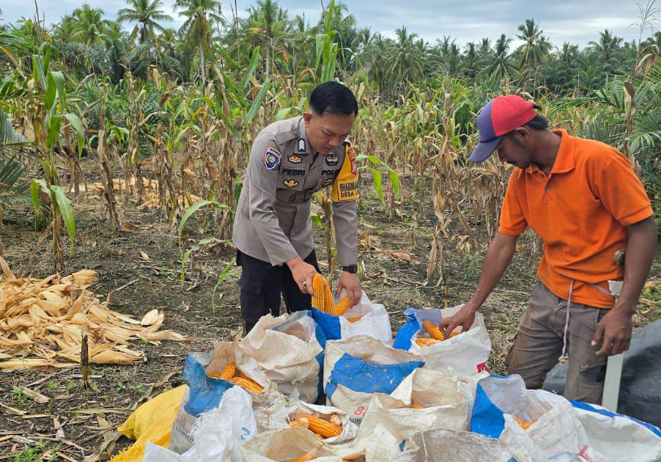 PASANGKAYU — Sinergi Polri dan masyarakat kembali terlihat nyata. Bhabinkamtibmas Polsek Bambalamotu, Bripka Febri, turun langsung ke lahan pertanian warga untuk ikut memanen jagung di Desa Letawa, Kecamatan Sarjo, Kabupaten Pasangkayu, Selasa (18/11/2025).