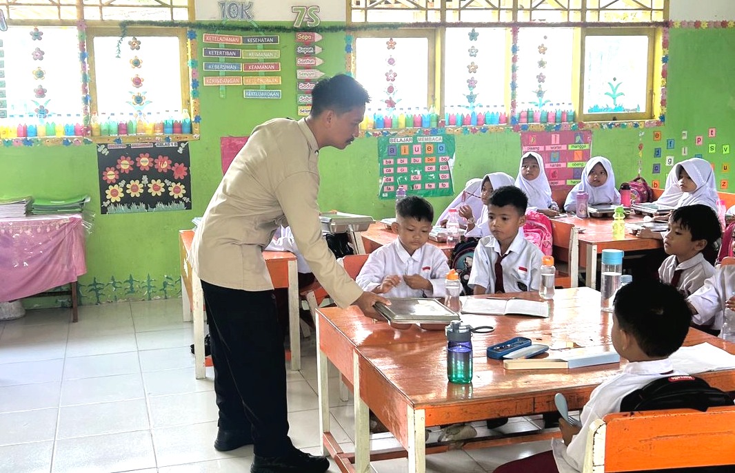 Polres Majene – Bhabinkamtibmas Polsek Banggae, Brigpol Muh. Nirwan N, kembali menunjukkan komitmennya dalam mendukung program pemerintah terkait peningkatan gizi dan kesehatan anak sekolah.