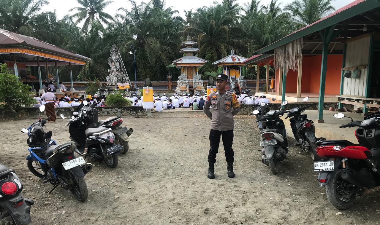 Bhabinkamtibmas Polsek Pasangkayu Laksanakan Pengamanan Giat Ibadah Galungan Umat Hindu Desa Martasari