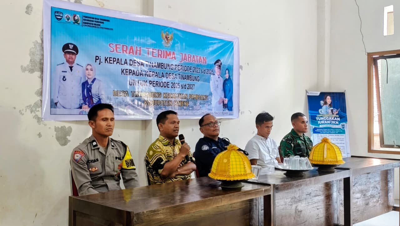 Polres Majene – Kegiatan serah terima jabatan dari Penjabat (Pj) Kepala Desa Tinambung periode 2023–2025 kepada Kepala Desa Tinambung terpilih untuk periode 2025–2027 berlangsung khidmat di Aula Kantor Desa Tinambung, Kecamatan Pamboang, Kabupaten Majene, kamis (20/11/25).