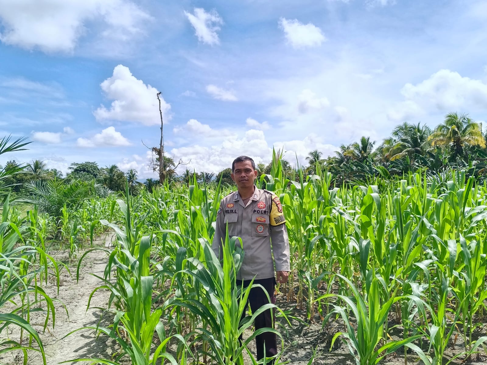 Polres Pasangkayu — Bhabinkamtibmas Polsek Sarudu BRIPKA Felix melaksanakan monitoring dan pengecekan tanaman jagung milik warga binaan bernama Irfan pada Kamis, 20 November 2025 sekitar pukul 09.00 Wita di Dusun Tamue, Desa Benggaulu, Kecamatan Dapurang, Kabupaten Pasangkayu.