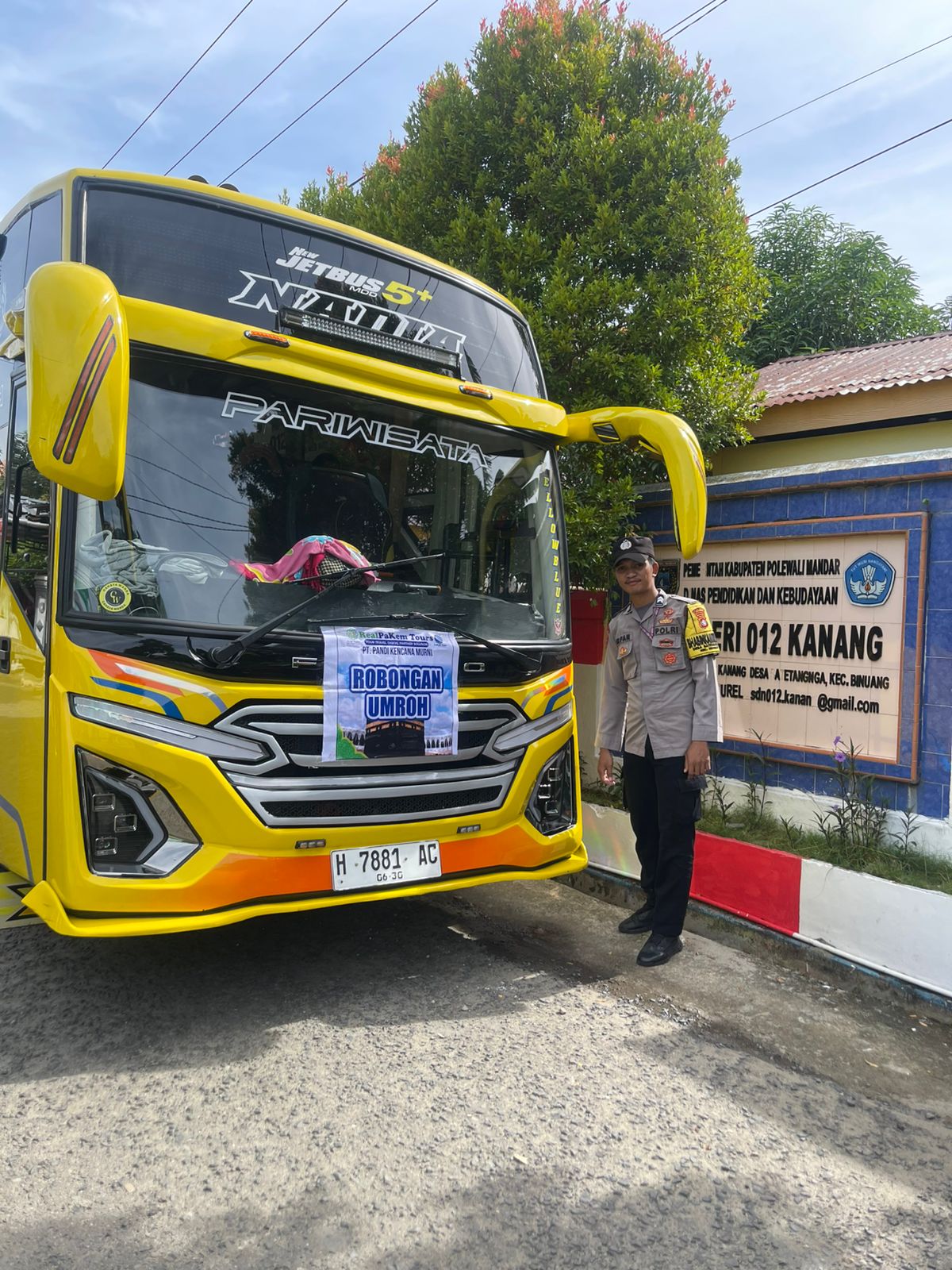 Keberangkatan jemaah berlangsung sekitar pukul 08.00 Wita, menggunakan satu unit bus yang telah disiapkan oleh pihak panitia. Kehadiran Briptu Irfan di lokasi bukan sekadar menjalankan tugas rutin, tetapi sekaligus memastikan bahwa seluruh rangkaian kegiatan, mulai dari pengumpulan jamaah hingga proses naik kendaraan, berjalan aman, tertib, dan lancar.