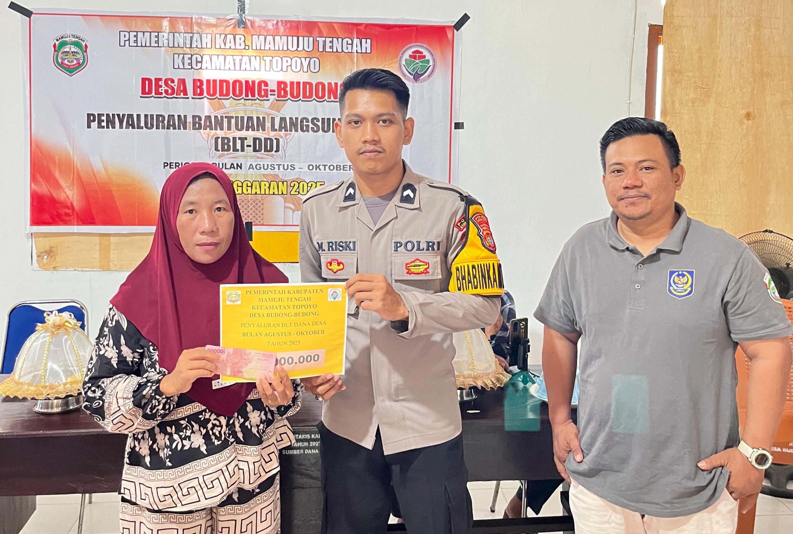 Polres Mamuju Tengah – Bhabinkamtibmas Desa Budong-Budong, Sek Topoyo Polres Mamuju Tengah, Bripda M. Riski menghadiri kegiatan penyaluran Bantuan Langsung Tunai Dana Desa (BLT-DD) yang digelar di Kantor Desa Budong-Budong, Rabu (23/11/2025).