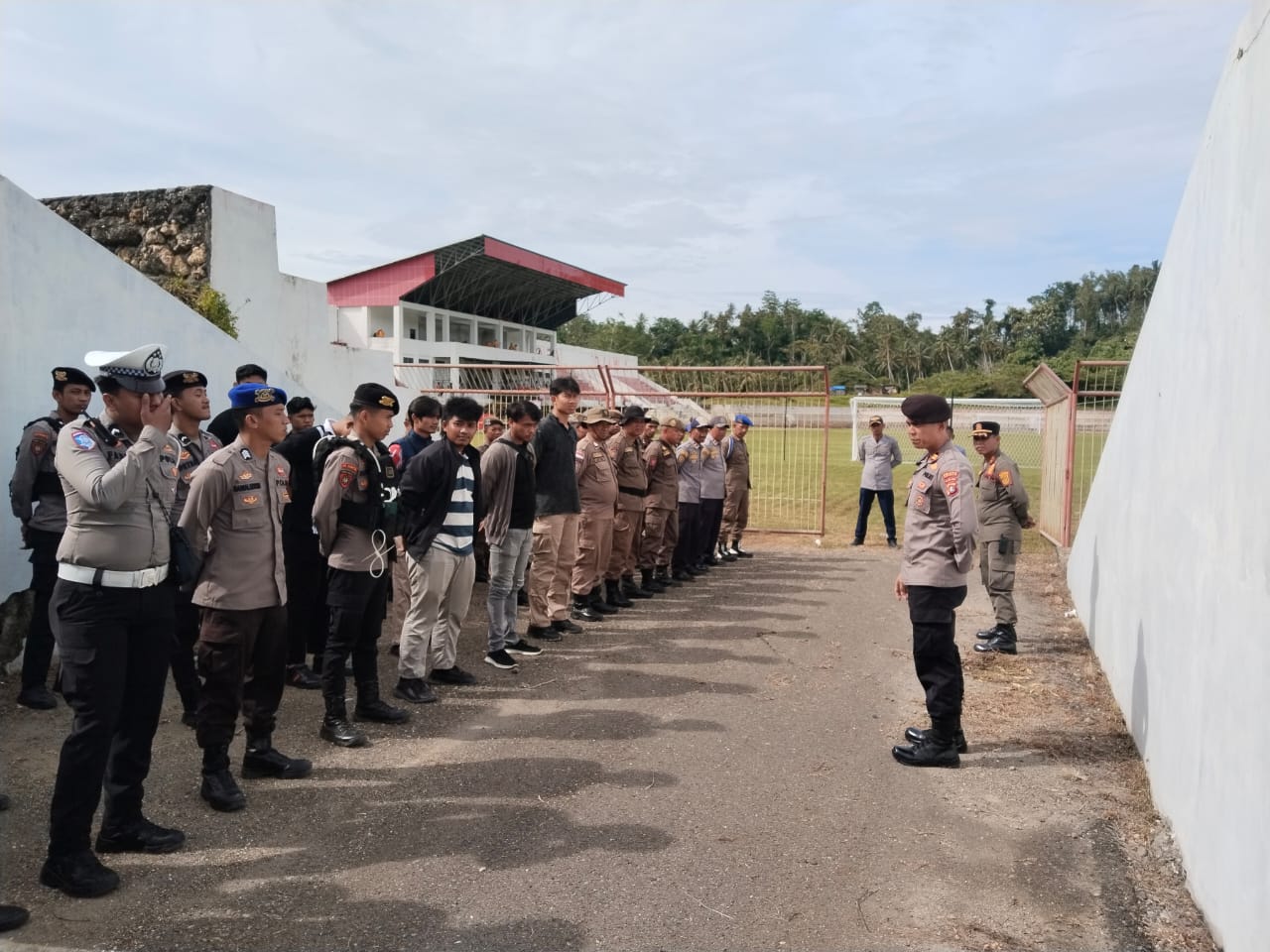 Pengamanan dimulai dengan apel pengecekan personel pada pukul 14.30 Wita, dipimpin IPTU Firman Sanusi, SH, serta dihadiri Wakapolsek Pasangkayu IPTU Chandra Boyke Ombong dan KBO Sat Lantas IPDA Baharudin. Personel gabungan dari Polres Pasangkayu, Satpol PP, dan Dinas Perhubungan turut dikerahkan untuk memperkuat pengamanan di seluruh titik strategis stadion.