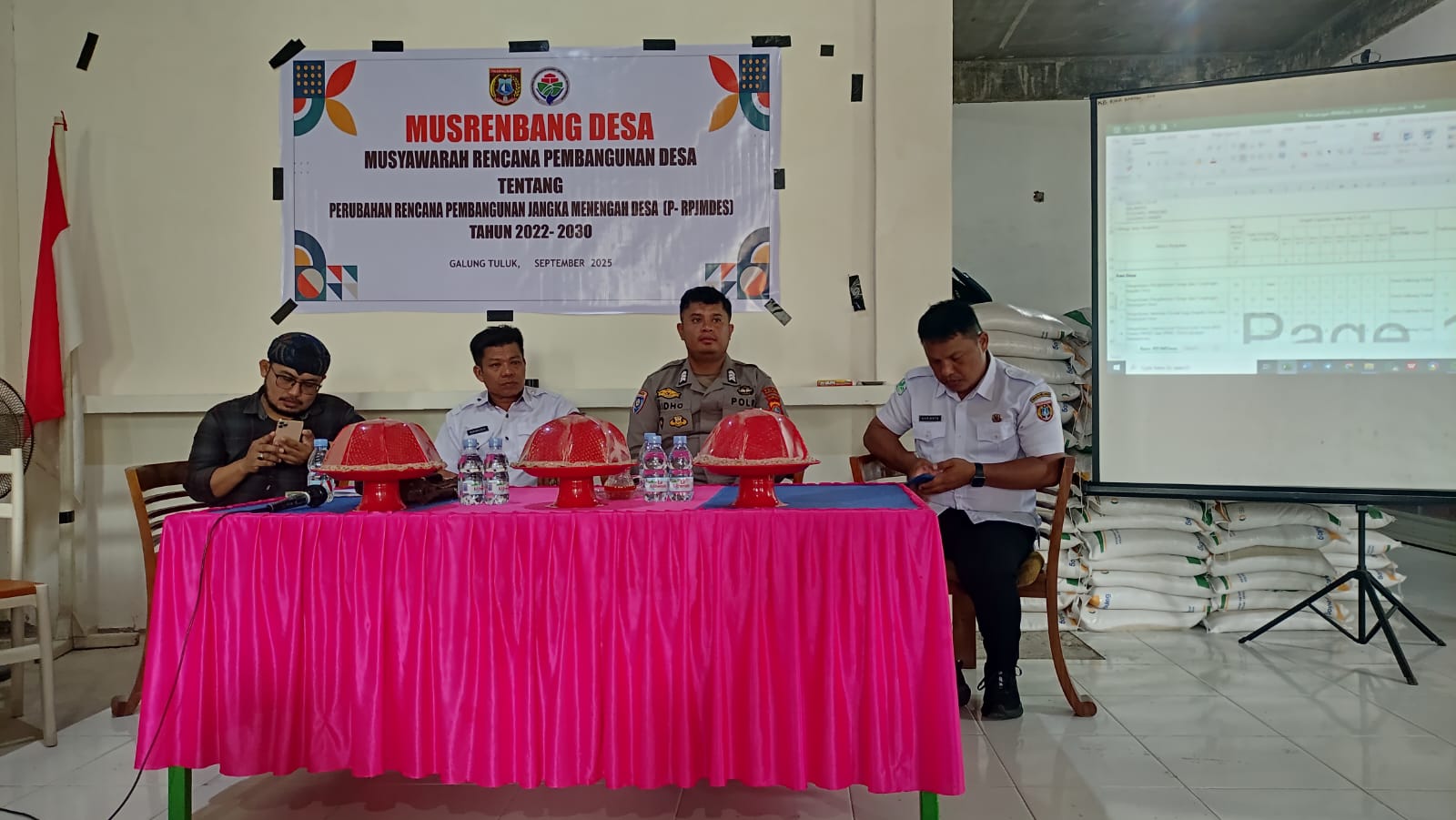 POLRES POLMAN – Pemerintah Desa Galung Tulu melaksanakan Musyawarah Perencanaan Pembangunan Desa (Musrembang) Perubahan Rencana Pembangunan Jangka Menengah Desa (P-RPJMDes) Tahun Anggaran 2022–2030 berlangsung di Aula Kantor Desa Galung Tulu mulai pukul 09.00 Wita, Rabu (26/11/2025).