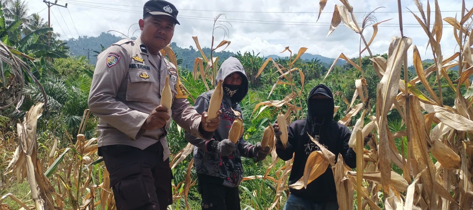 Mamuju – Sebagai upaya mendukung program ketahanan pangan serta memenuhi target serapan jagung Polresta Mamuju ke Bulog, Bhabinkamtibmas Desa Belang-Belang turun langsung membantu para petani melaksanakan panen jagung di wilayah binaannya, Rabu, 26 Nopember 2025