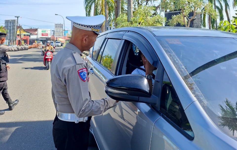 Sejak pagi, arus kendaraan yang melintas di area taman paling ikonik di pusat Kota Mamuju itu terlihat tersendat. Petugas gabungan menghentikan pengendara satu per satu untuk dilakukan pemeriksaan. Namun berbeda dari kesan menegangkan, kegiatan ini berlangsung humanis. Petugas memberikan imbauan dengan komunikasi yang hangat, mengingatkan pentingnya penggunaan helm, sabuk pengaman, serta kewajiban membawa surat administrasi kendaraan.