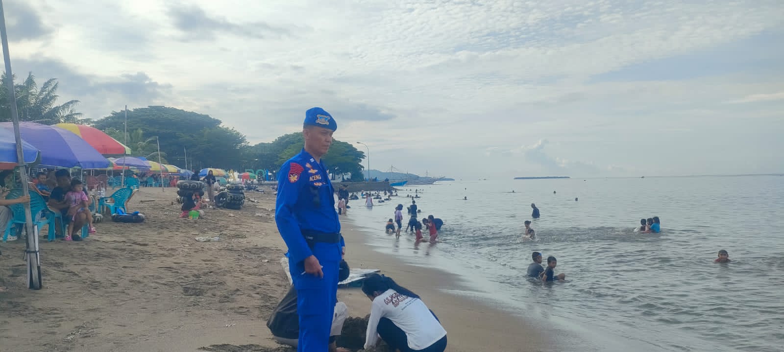 Pantai Bahari yang menjadi salah satu destinasi favorit warga untuk berlibur di akhir pekan tampak dipadati pengunjung. Untuk memastikan keselamatan dan kenyamanan masyarakat, personel Sat Polairud aktif melakukan patroli seputar bibir pantai sekaligus memberikan imbauan terkait keamanan saat beraktivitas di area perairan.