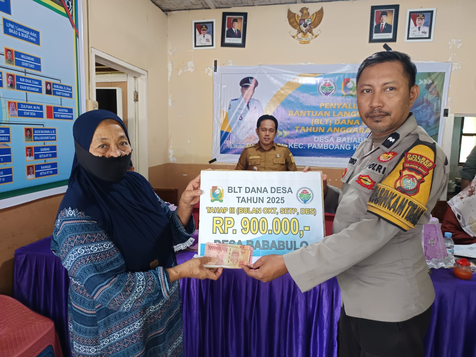 Polres Majene – Dalam upaya memastikan bantuan tersalurkan tepat sasaran, Bhabinkamtibmas Polsek Pamboang Aipda Heriyono, S.Pd kembali menunjukkan komitmennya terhadap pelayanan masyarakat dengan melakukan pendampingan pada kegiatan penyaluran Bantuan Langsung Tunai (BLT) Dana Desa Tahap IV di Kantor Desa Bababulo, Kecamatan Pamboang, Kabupaten Majene, Senin (1/12/25).