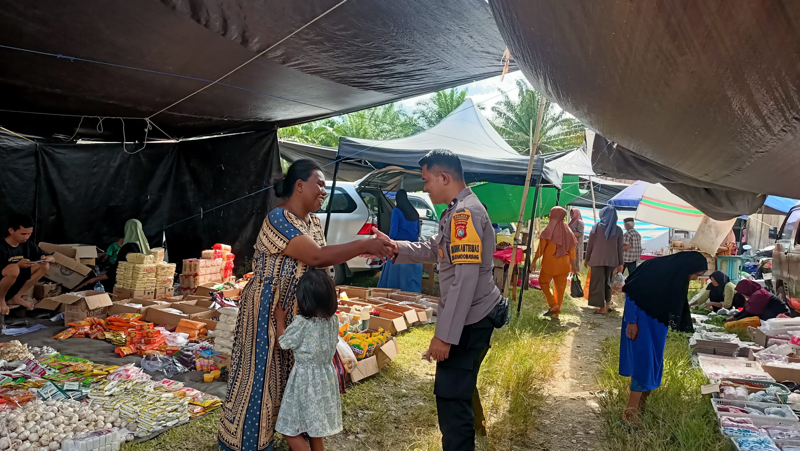 Sejak pagi, AIPDA Hamdani melakukan patroli menyusuri seluruh area pasar, memastikan aktivitas jual beli berlangsung tertib tanpa gangguan. Kehadirannya memberikan rasa aman bagi para pedagang dan pengunjung, terlebih di akhir pekan ketika volume transaksi meningkat signifikan.