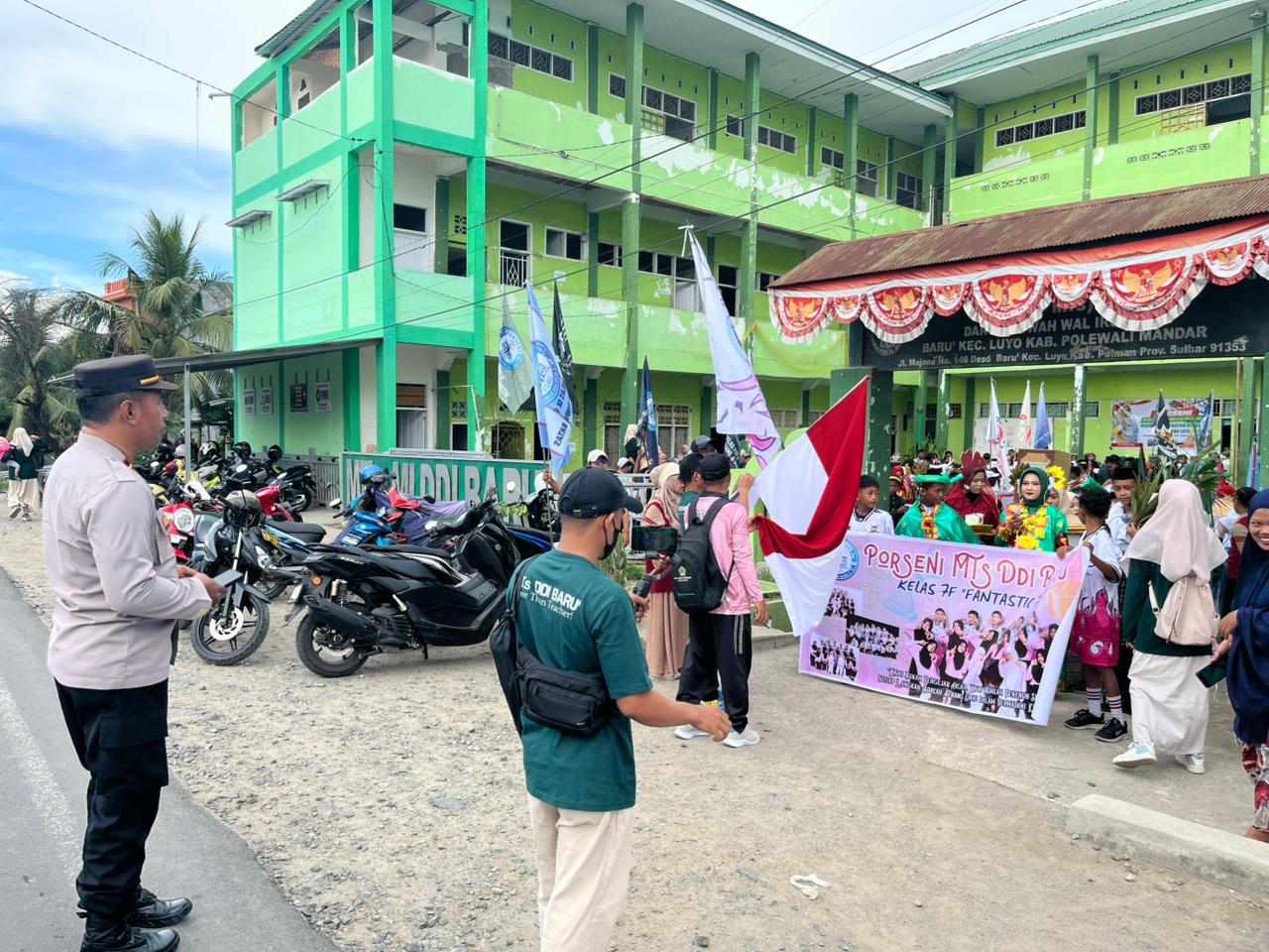 POLRES POLMAN — Jajaran Polsubsektor Luyo menunjukkan kesiapsiagaan dan komitmennya dalam memberikan rasa aman kepada masyarakat dengan mengamankan seluruh rangkaian devile pembukaan Pekan Olahraga dan Seni (Porseni) MI–MTs DDI Baru, Senin pagi (08/12/25).