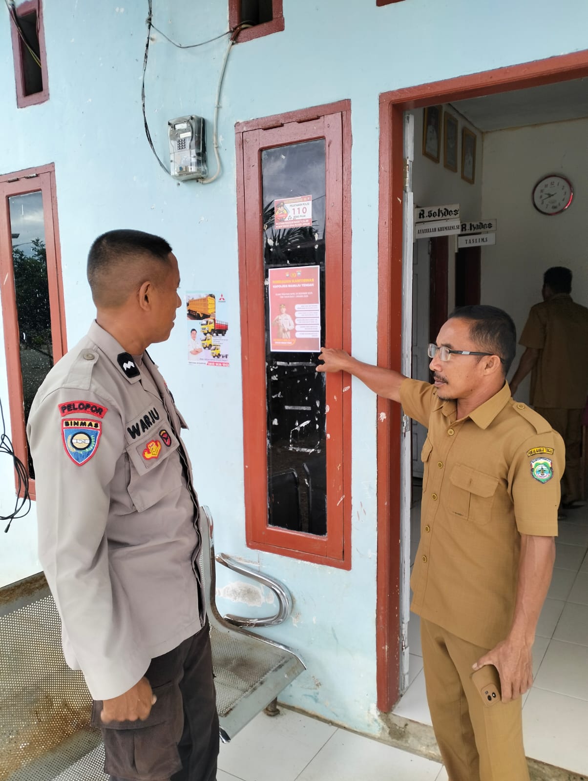 Selain memasang himbauan, Aipda Warju juga menyampaikan pesan-pesan kamtibmas secara langsung kepada perangkat desa dan masyarakat yang hadir, antara lain agar selalu mengunci rumah saat bepergian, tidak mudah terprovokasi oleh informasi yang belum tentu benar (hoaks), serta tetap menjaga kerukunan antarwarga.