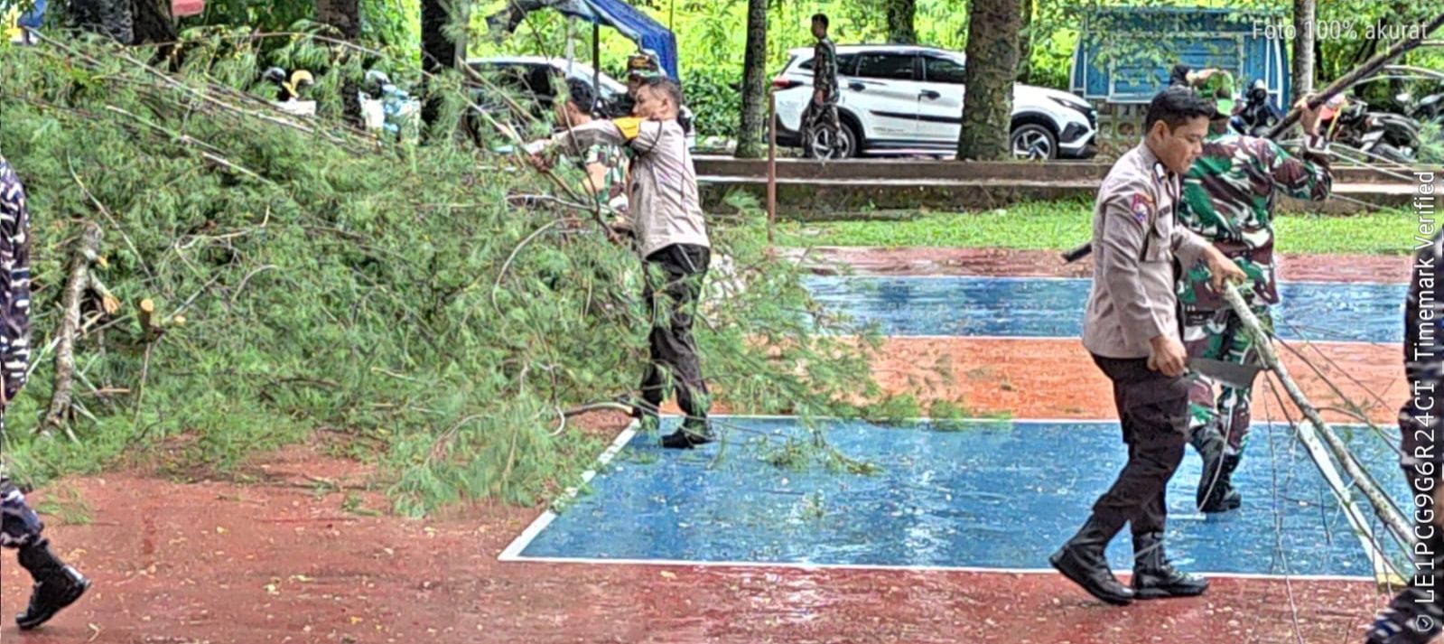Tidak hanya aparat, sejumlah warga sekitar juga turut bergabung membantu proses pembersihan, menciptakan suasana kebersamaan dan gotong royong yang hangat.