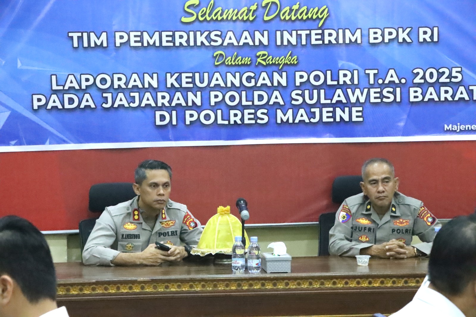 Polres Majene – Jajaran Polres Majene menerima kunjungan resmi dari Badan Pemeriksa Keuangan Republik Indonesia (BPK RI) dalam rangka pelaksanaan Pemeriksaan Interim atas Laporan Keuangan Polri Tahun Anggaran 2025.