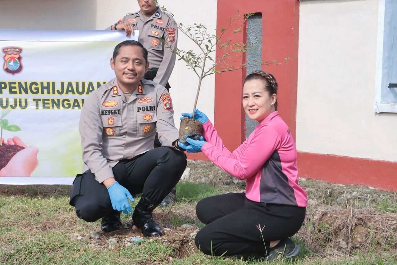 Polres Mamuju Tengah – Kapolres Mamuju Tengah AKBP Hengky Kristanto Abadi, S.H., S.I.K., bersama Wakapolres Mamuju Tengah, para Pejabat Utama (PJU) Polres Mamuju Tengah, serta Ketua Bhayangkari Cabang Mamuju Tengah Ny. Maria Hengky beserta pengurus, menggelar kegiatan penanaman pohon dalam rangka Polri Peduli Penghijauan di Mako Polres Mamuju Tengah. Senin (15/12/2025).