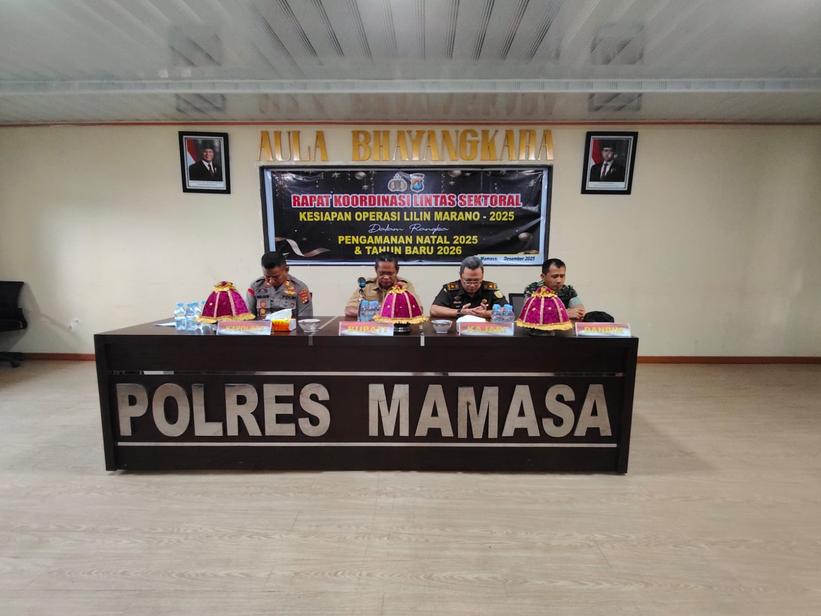 MAMASA — Polres Mamasa menunjukkan keseriusan penuh dalam mengamankan perayaan Natal 2025 dan Tahun Baru 2026 dengan menggelar Rapat Koordinasi Lintas Sektoral Kesiapan Operasi Lilin Marano 2025, Senin (15/12/2025) pukul 09.00 Wita. Rapat strategis ini menjadi langkah awal memastikan situasi kamtibmas di Kabupaten Mamasa tetap aman, tertib, dan kondusif.