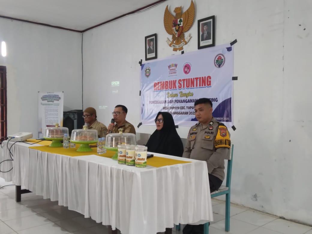 Polres Mamuju Tengah – Bhabinkamtibmas Desa Topoyo Polsek Topoyo Polres Mamuju Tengah, Briptu Alamsyah Alim, menghadiri kegiatan Launching Inovasi SER BU (Serba untuk Ibu) Stunting Desa Topoyo yang dilaksanakan di wilayah Desa Topoyo, Kecamatan Topoyo, Kabupaten Mamuju Tengah. Selasa (16/12/2025).