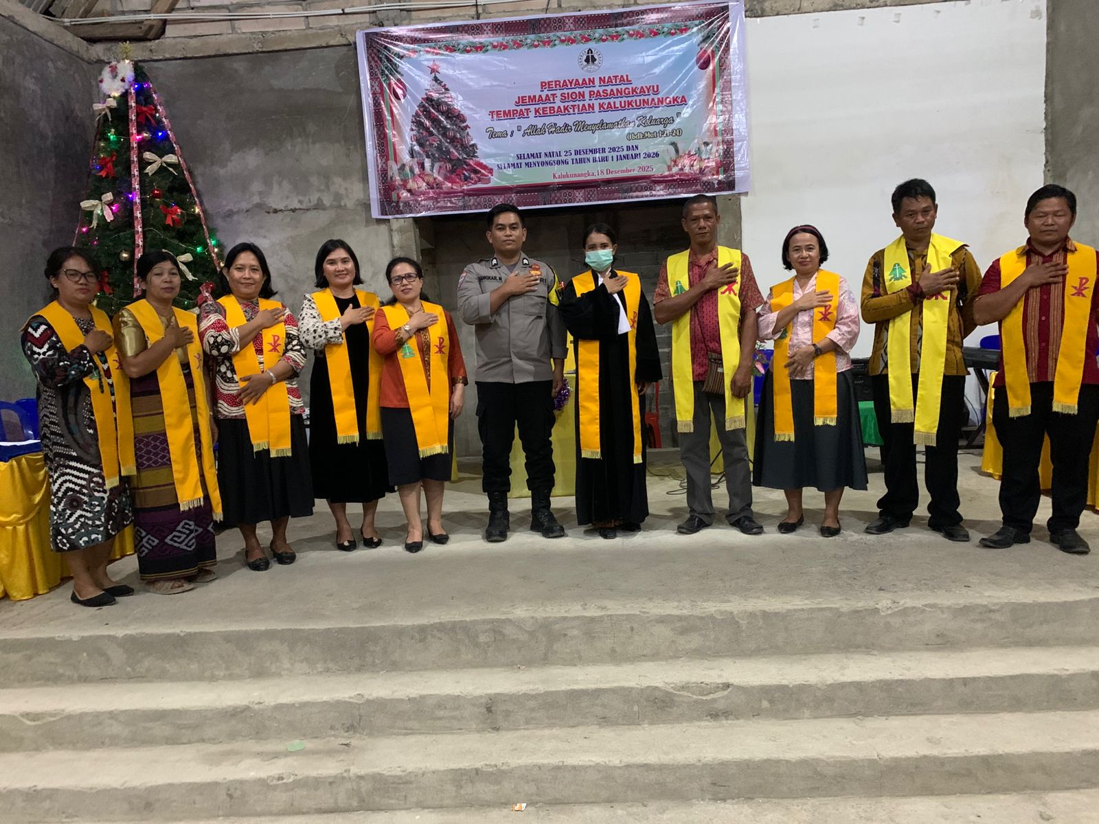 Bhabinkamtibmas Bambalamotu, BRIPTU Sangkar, melakukan pemantauan situasi kamtibmas di sekitar gereja serta memastikan tidak adanya potensi gangguan keamanan selama ibadah berlangsung. Sekitar 100 jemaat mengikuti ibadah Natal yang dipimpin oleh Pendeta Wasti Sever, S.Th, dengan suasana tertib, aman, dan kondusif.