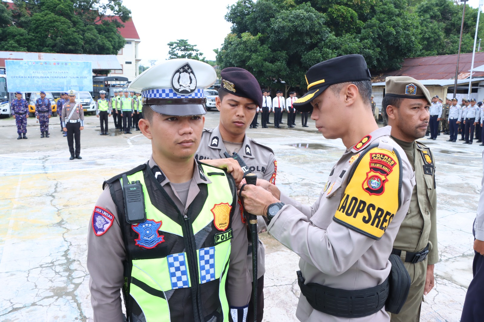 Penyematan pita tanda operasi kepada masing-masing perwakilan instansi juga dilakukan sebagai tanda dimulainya operasi kepolisian Lilin 2025 diwilayah hukum Polres Majene.