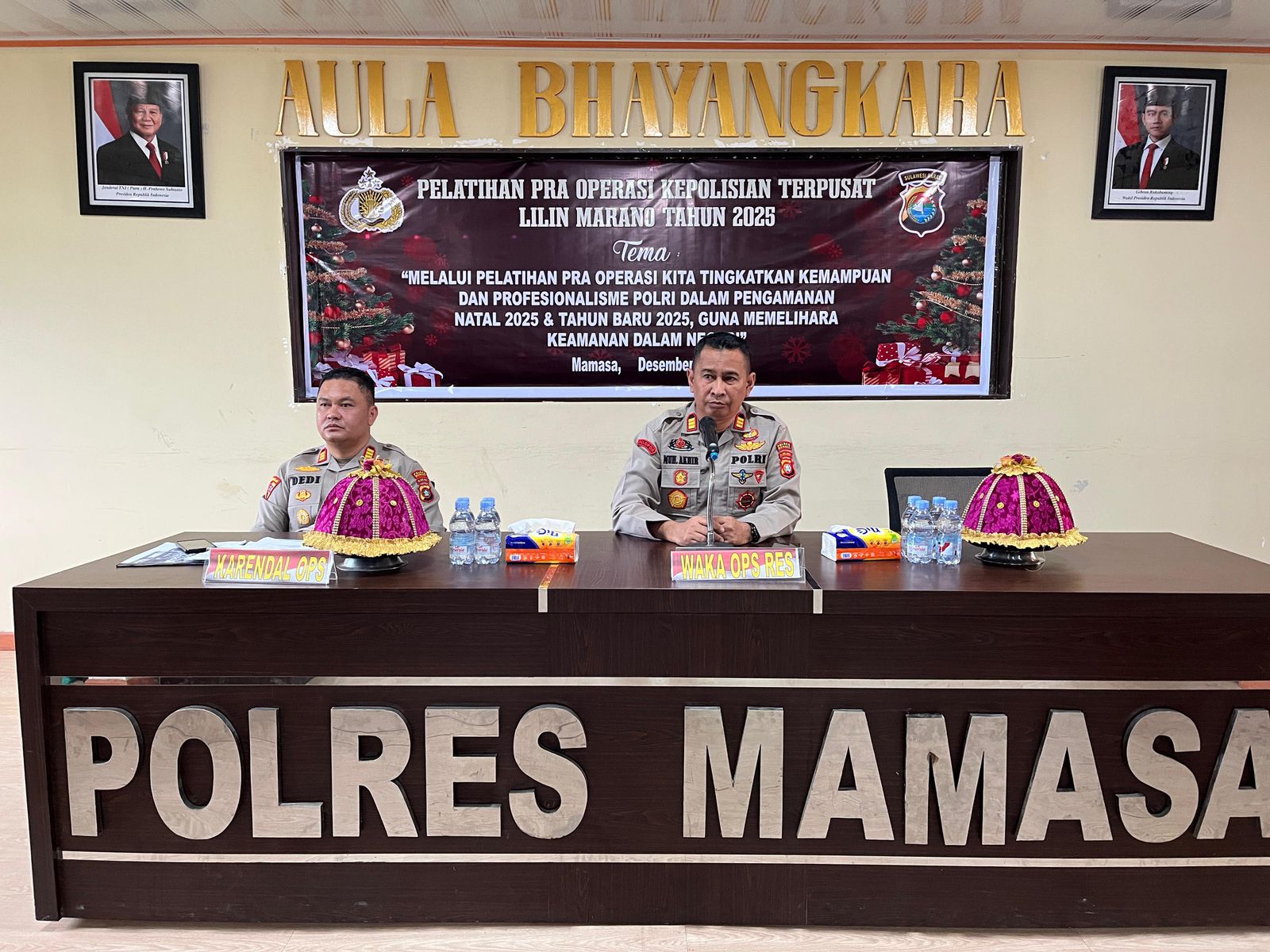 MAMASA – Menjelang perayaan Natal 2025 dan Tahun Baru 2026, Polres Mamasa tancap gas memantapkan kesiapan pengamanan melalui Pelatihan Pra Operasi Kepolisian Terpusat Lilin Marano Tahun 2025. Kegiatan strategis ini digelar di Aula Polres Mamasa, Jumat (19/12/2025), sebagai langkah awal memastikan situasi kamtibmas tetap aman, kondusif, dan terkendali.