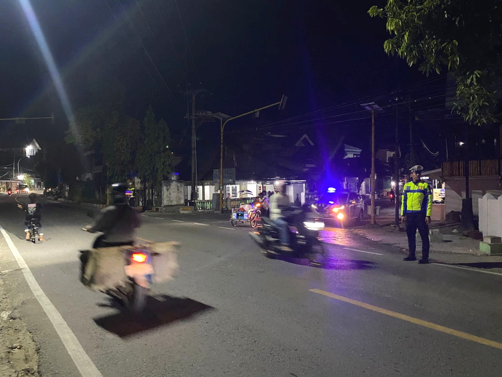 Kegiatan patroli ini menyasar titik-titik yang dinilai rawan terjadinya pelanggaran lalu lintas, balapan liar, serta potensi tindak kejahatan jalanan yang kerap muncul pada malam hingga dini hari.