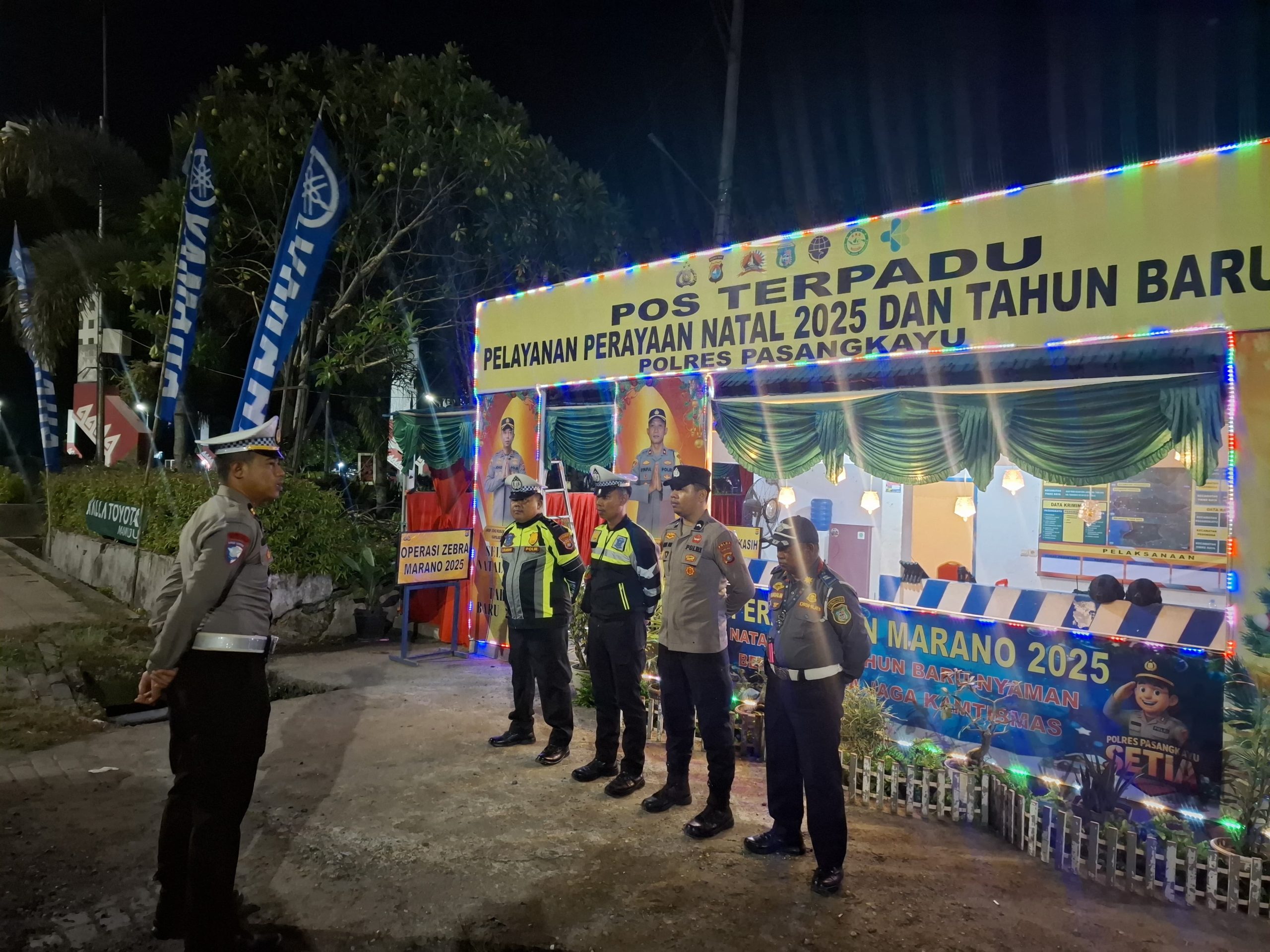 Polres Pasangkayu – Dalam upaya menjaga stabilitas keamanan dan ketertiban masyarakat (Kamtibmas) menjelang perayaan Natal 2025 dan Tahun Baru 2026, Polres Pasangkayu menggelar Apel Malam Personel Operasi Lilin Marannu 2025 di Pos Pengamanan Terpadu Bundaran Smart, Minggu malam (21/12/2025) sekitar pukul 21.00 WITA.