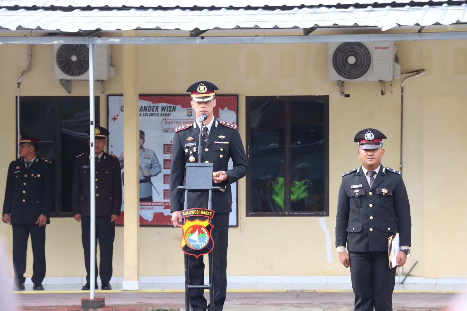 Upacara dipimpin langsung oleh Kapolres Majene AKBP Muhammad Amiruddin, S.I.K., dan diikuti oleh Wakapolres Majene, para pejabat utama Polres Majene, para perwira, serta seluruh personel bintara Polres Majene.