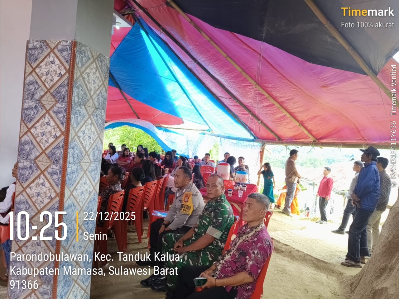 MAMASA — Komitmen Polri dalam menjaga keamanan dan ketertiban masyarakat kembali dibuktikan. Bhabinkamtibmas Polsek Mamasa, Bripka Eliasar Pecu, bersinergi dengan Babinsa Serka Tallulangi, melaksanakan pengamanan ketat pada kegiatan Penthahbisan Gedung Gereja GPDI Jemaat Ekklesia yang berlangsung di Desa Parondobulawan, Kecamatan Tandukkalua, Kabupaten Mamasa, Senin (22 Desember 2025).
