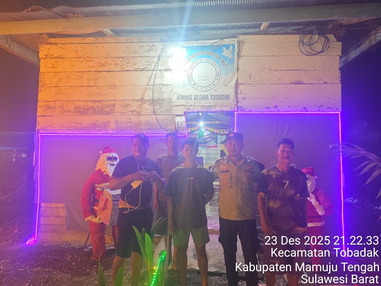 Polres Mamuju Tengah – Dalam rangka menjaga situasi kamtibmas yang kondusif, Bhabinkamtibmas Desa Tobadak, Aiptu Bustamil, melaksanakan patroli dan monitoring kegiatan ibadah gereja yang berlangsung di wilayah Desa Tobadak, Kabupaten Mamuju Tengah. Rabu (24/12/2025).