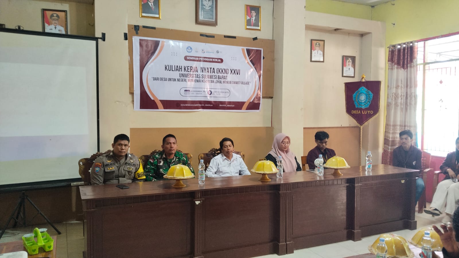 Rangkaian kegiatan diawali dengan sambutan Kepala Desa Luyo yang menyampaikan apresiasi atas kehadiran mahasiswa KKN Unsulbar. Ia berharap program kerja yang dipaparkan dapat bersinergi dengan kebutuhan masyarakat desa dan memberikan dampak nyata, khususnya dalam peningkatan kapasitas sumber daya lokal.