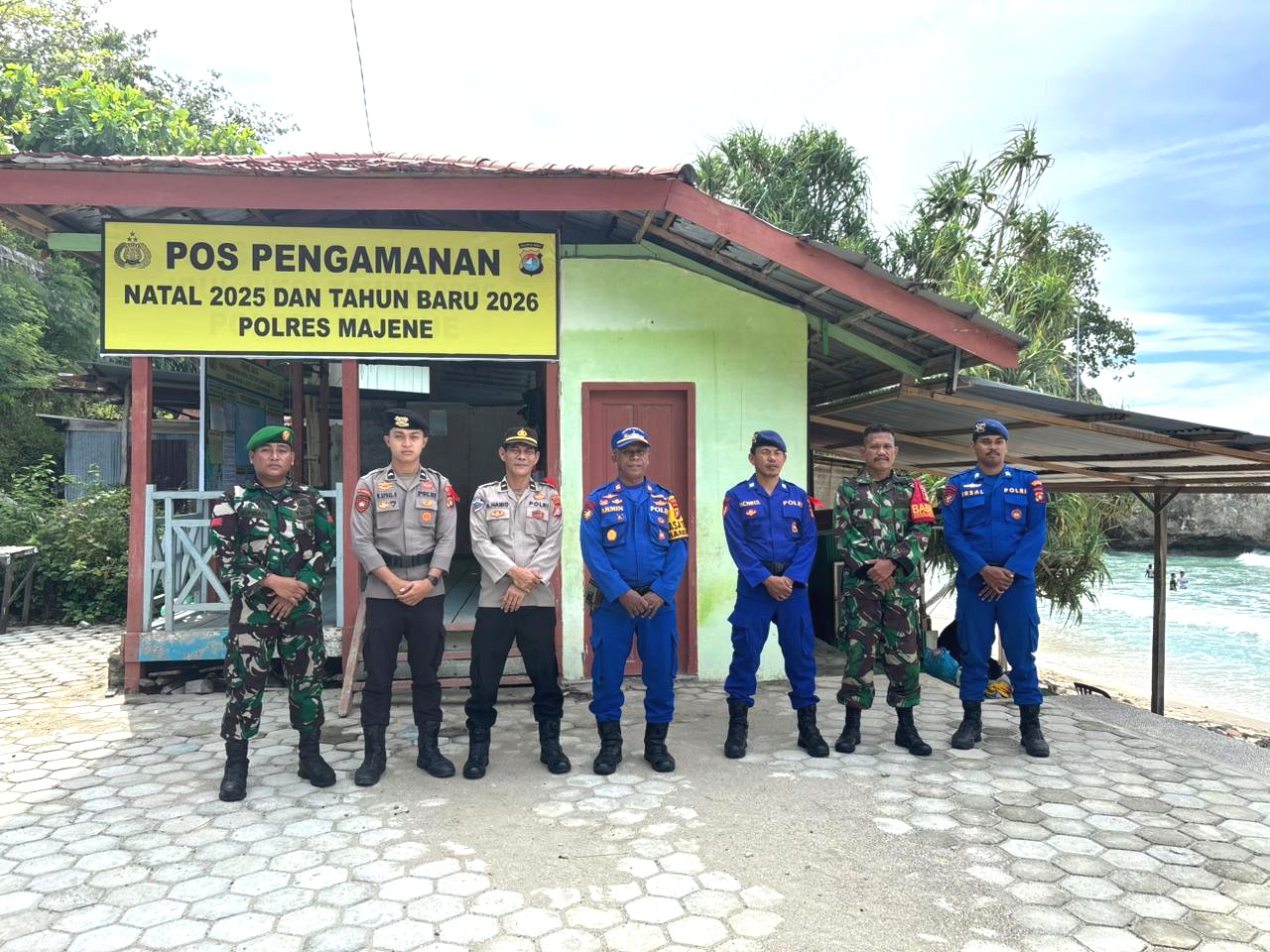 Polres Majene – Personel Operasi Lilin 2025 Polres Majene melaksanakan kegiatan pengamanan di sejumlah objek wisata guna memberikan rasa aman dan nyaman kepada masyarakat yang mengisi libur Natal dan Tahun Baru. Salah satu lokasi yang menjadi fokus pengamanan adalah Objek Wisata Pantai Dato, Kabupaten Majene, pada Minggu (28/12/2025).