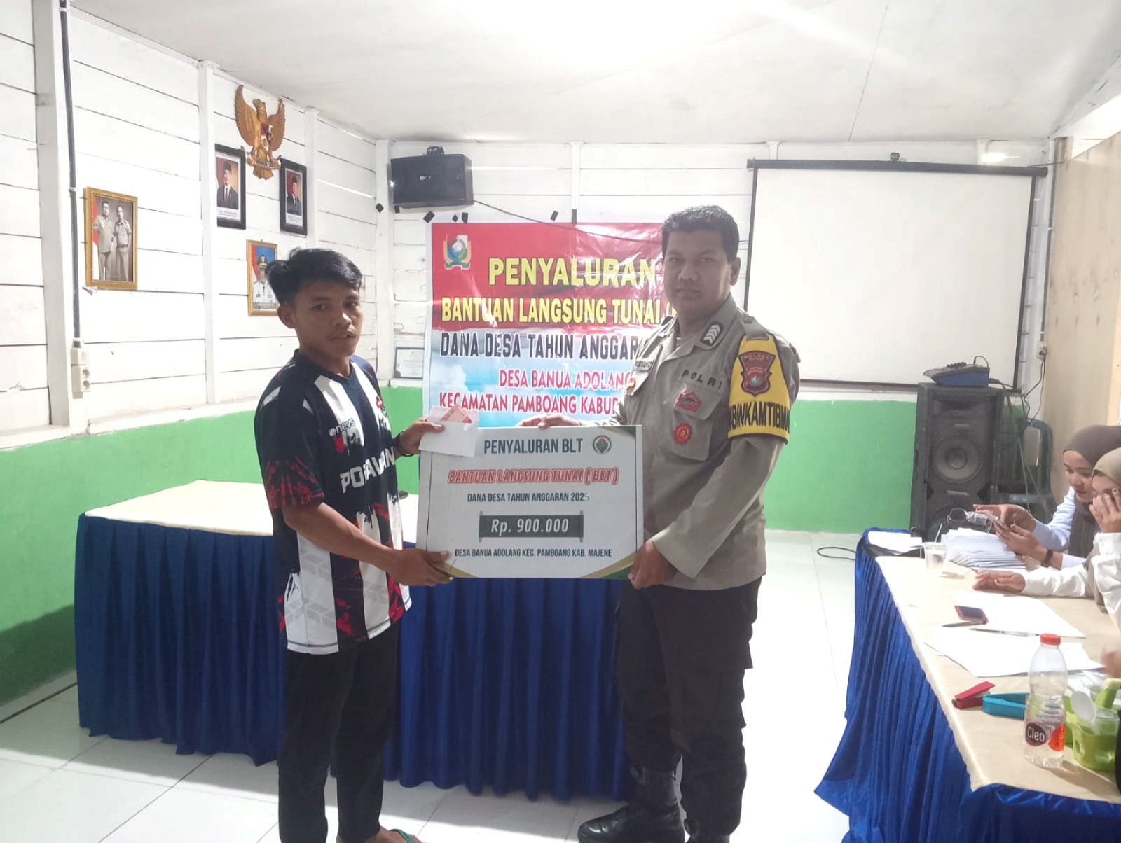 Polres Majene – Dalam rangka memastikan penyaluran bantuan pemerintah berjalan aman, tertib, dan tepat sasaran, Bhabinkamtibmas Polsek Pamboang Polres Majene, Brigpol Dwi Rudianto, melaksanakan pengawalan kegiatan penyaluran Bantuan Langsung Tunai (BLT) Desa Triwulan IV Tahun 2025 kepada warga Desa Banua Adolang, Kecamatan Pamboang, Kabupaten Majene, Rabu (31/2/25).