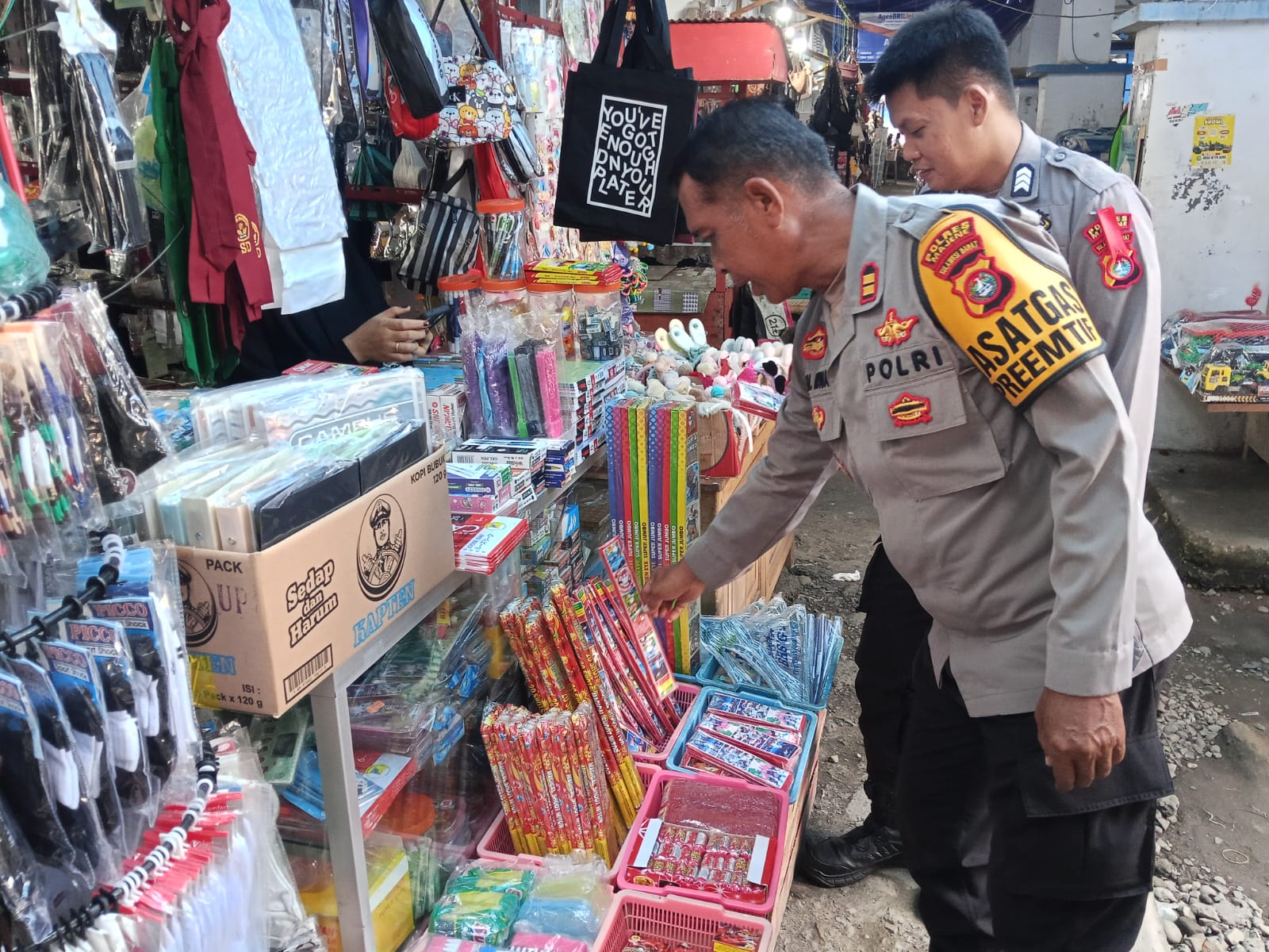“Kami mengimbau kepada seluruh pedagang agar tidak menjual petasan dalam bentuk apa pun. Larangan ini bertujuan untuk melindungi masyarakat, terutama anak-anak, serta mencegah terjadinya hal-hal yang tidak diinginkan saat malam pergantian tahun,” ujar Iptu Muh. Irwan di sela-sela kegiatan.