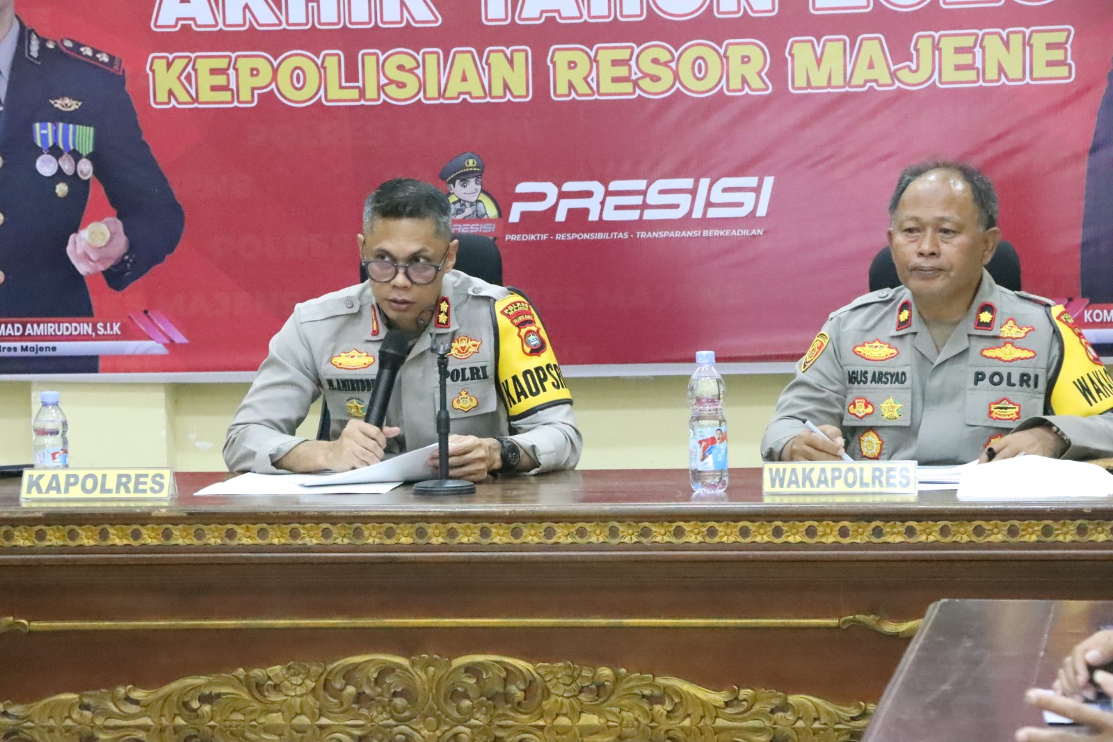 AKBP Muhammad Amiruddin mengungkapkan bahwa sepanjang tahun 2025, Polres Majene mencatat sebanyak 157 kasus kejahatan. Angka tersebut mengalami penurunan signifikan sebanyak 28 kasus atau sekitar 15 persen dibandingkan tahun 2024 yang mencapai 185 kasus. Selain itu, tingkat penyelesaian perkara (crime clearance) juga menunjukkan tren positif, yakni sebesar 76,4 persen, meningkat 3,4 persen dibandingkan tahun sebelumnya yang berada di angka 73 persen.