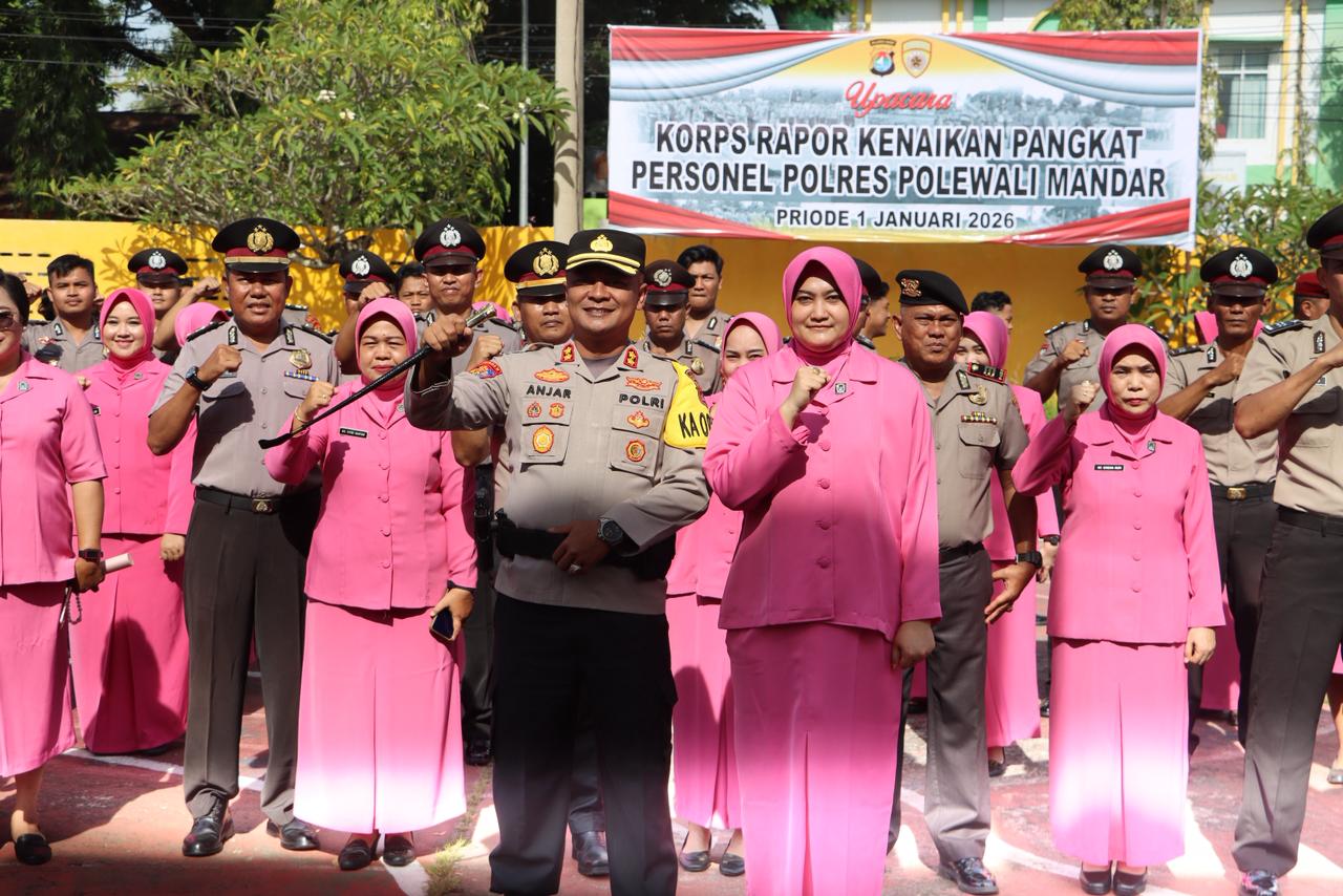 Pada kesempatan tersebut, sebanyak 81 personel Polres Polewali Mandar resmi menerima kenaikan pangkat setingkat lebih tinggi.
