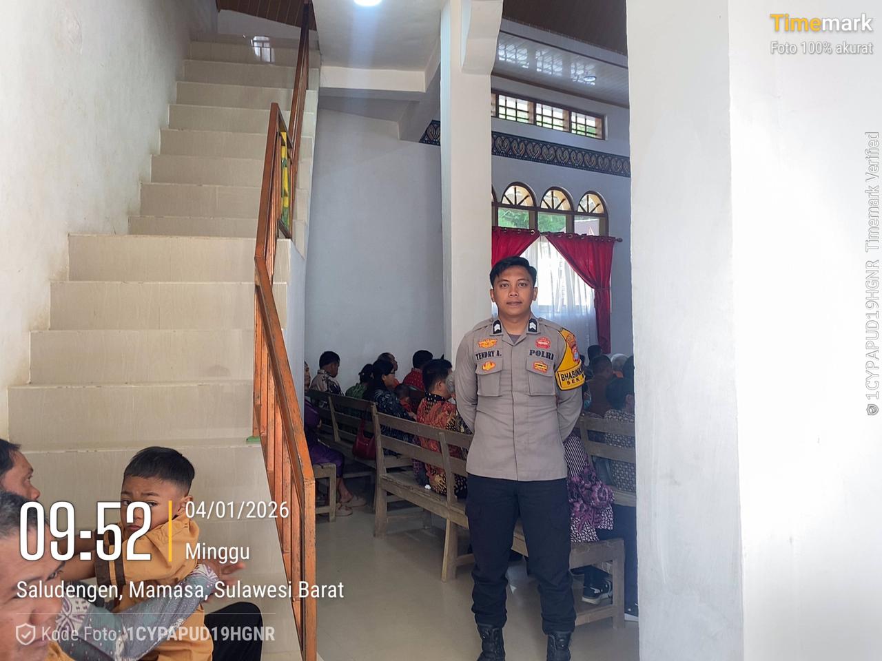 POLRES MAMASA — Komitmen Polri dalam menjaga keamanan dan ketertiban masyarakat kembali ditunjukkan oleh jajaran Polsek Mambi. Pada Minggu, 4 Januari 2026, personel Polsek Mambi melaksanakan pengamanan ibadah Minggu di Gereja Toraja Mamasa Jemaat Saludengen, Desa Saludengen, Kecamatan Bambang, Kabupaten Mamasa.