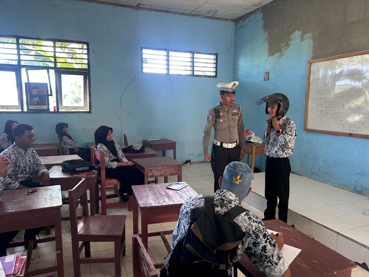 Kegiatan ini dilaksanakan oleh personel Unit Kamseltibcar, yakni Bripka Sarbini dan Bripda M. Eril, yang secara interaktif menyampaikan materi serta mengajak pelajar untuk menjadi pelopor keselamatan berlalu lintas. Antusiasme siswa terlihat tinggi, ditandai dengan sesi tanya jawab yang berlangsung aktif selama kegiatan.