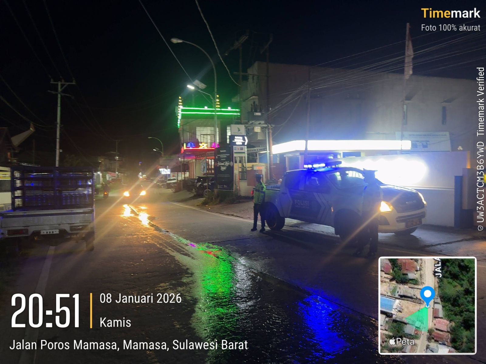 MAMASA – Guna menjaga stabilitas keamanan dan ketertiban masyarakat (Kamtibmas) serta memastikan kelancaran arus lalu lintas pada malam hari, Satuan Lalu Lintas (Satlantas) Polres Mamasa kembali menggelar kegiatan Blue Light Patrol di wilayah Kota Mamasa, Kamis malam (8/1/2026).