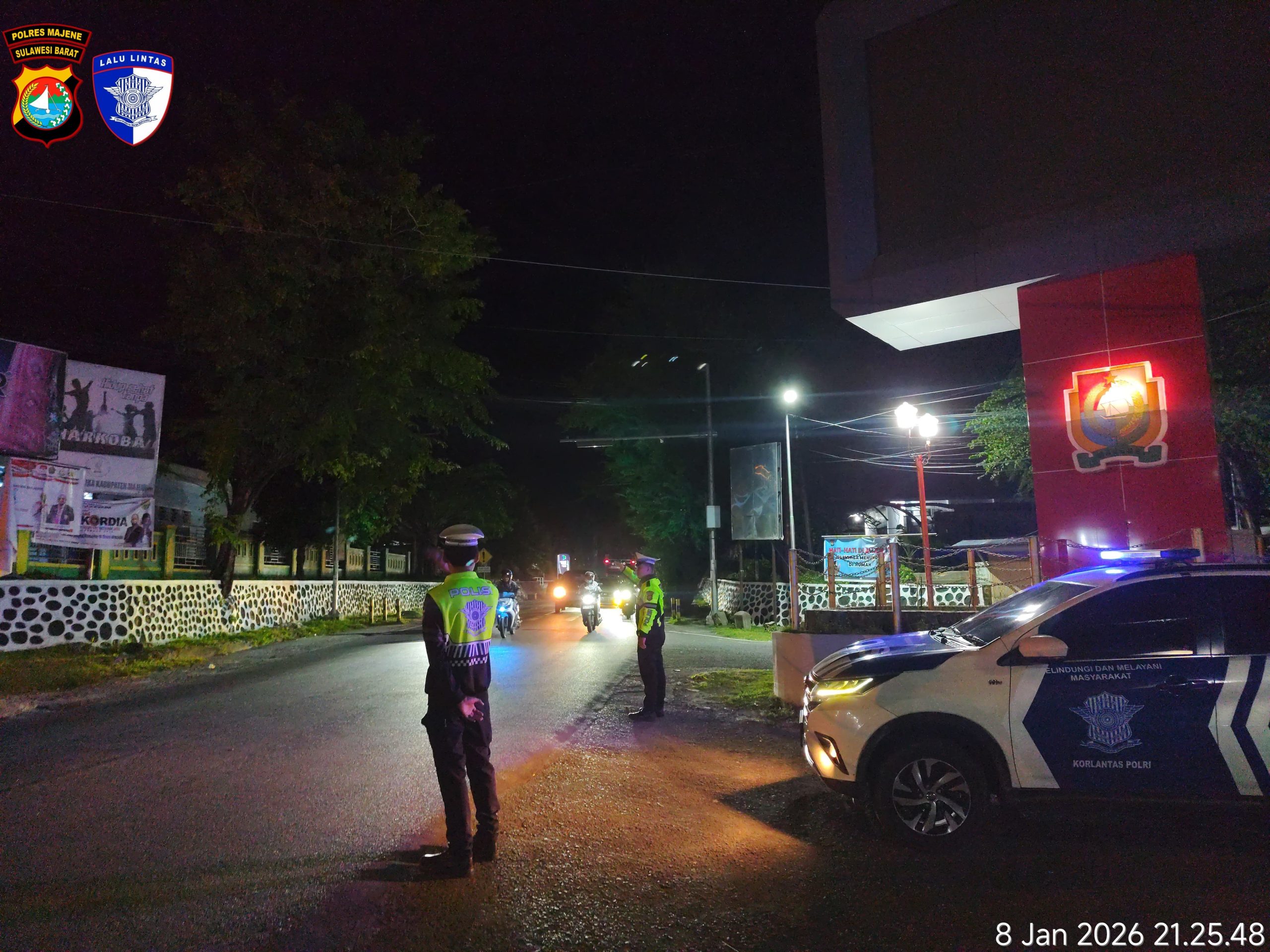 Kegiatan tersebut dilaksanakan pada Kamis, 08 Januari 2025, mulai pukul 20.00 WITA hingga selesai, oleh Personel Piket Siaga Lantas Polres Majene yang terdiri dari Briptu Akmal Firdaus, Bripda Fathan Anugerah F.A, Bripda Ikmal Ihsan, dan Bripda Muh. Qadri Idris.