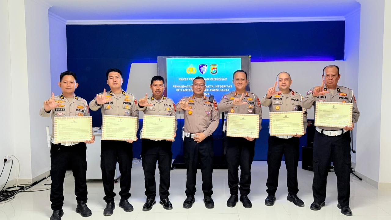 MAMUJU — Direktur Lalu Lintas (Dirlantas) Polda Sulawesi Barat, Kombes Pol Nurhadi Ismanto, menegaskan komitmen kuat pengelolaan anggaran yang bertanggung jawab dan berintegritas dalam rapat penyerahan Rencana Distribusi dan Penggunaan Anggaran (Rendisgar) serta penandatanganan pakta integritas bagi seluruh Subdit jajaran Ditlantas Polda Sulbar. Kegiatan berlangsung di Aula Kantor BPKB Polda Sulbar, Jumat (9/1/2026).