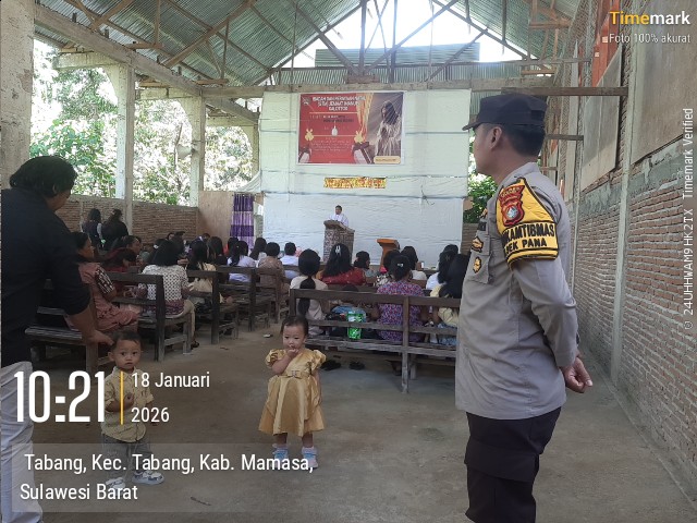 MAMASA – Komitmen Polri dalam menjaga toleransi dan menjamin kebebasan beribadah kembali dibuktikan. Personel Polri hadir langsung mengamankan pelaksanaan Ibadah Hari Minggu di Gereja Toraja Mamasa Jemaat Imanuel Kalottok, Kecamatan Tabang, Kabupaten Mamasa, Minggu (18/1/2026).