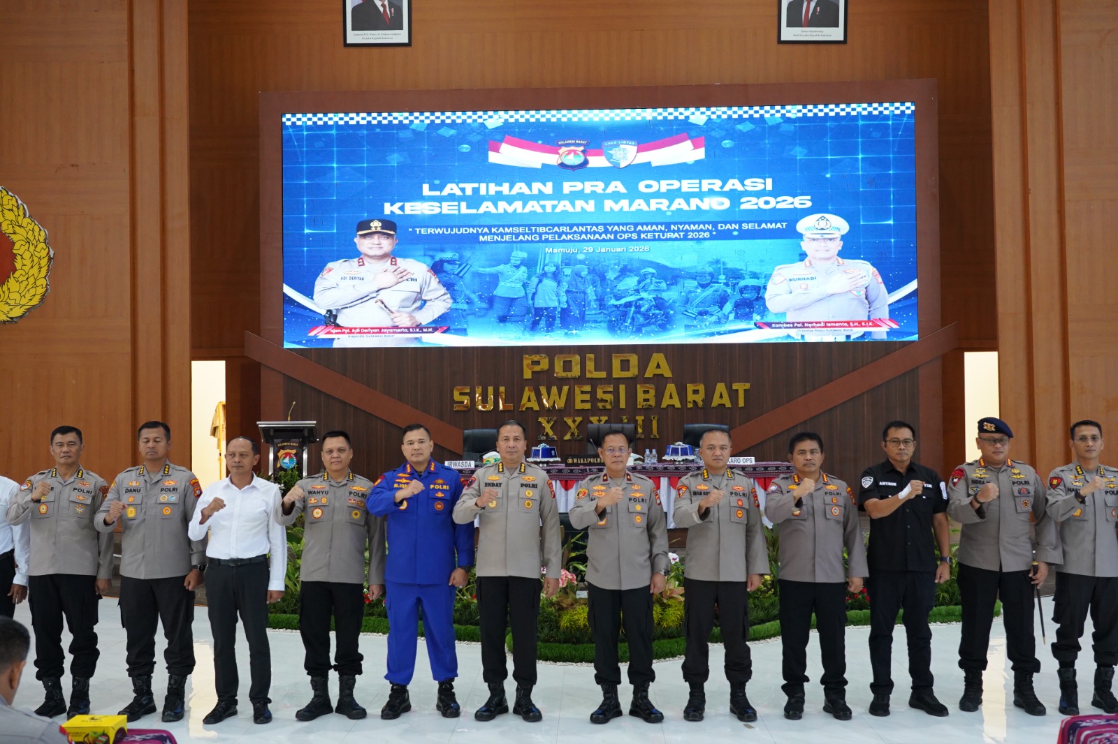 MAMUJU – Dalam pelaksanaan Latihan Pra Operasi (Latpraops) Keselamatan Marano 2026 yang digelar di Aula Marannu Mapolda Sulbar, Kamis (29/1/26) Wakapolda Sulbar Brigjen Pol Hari Santoso menyampaikan empat pesan pokok kepada seluruh personel.