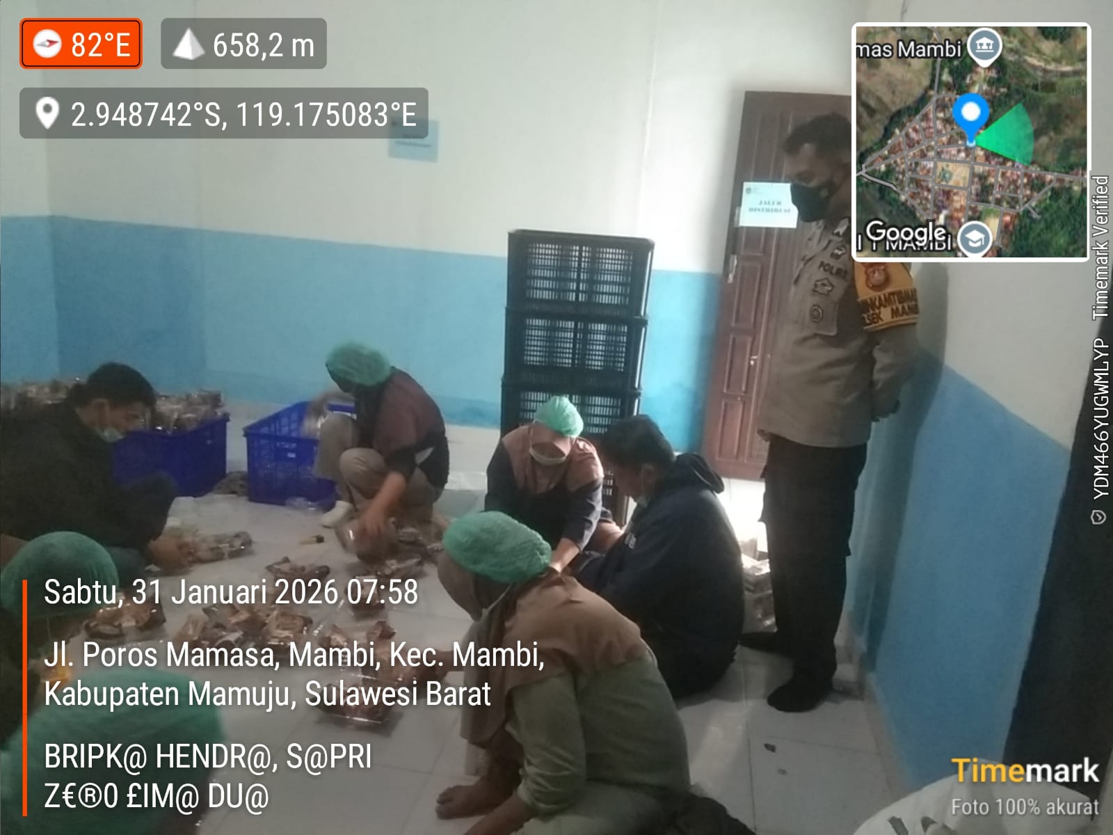 POLRES MAMASA — Pelaksanaan Monitoring dan Pengawasan pendistribusian Makan Bergizi Gratis (MBG) di wilayah Kecamatan Mambi, Kabupaten Mamasa, berlangsung aman, tertib, dan terkendali. Kegiatan yang digelar oleh SPPG Mambi Yayasan Tujuh Tunas Tabulahan ini dilaksanakan pada Sabtu, 31 Januari 2026, sekitar pukul 07.30 WITA, bertempat di Lingkungan Batu Mea, Kelurahan Mambi, Provinsi Sulawesi Barat.