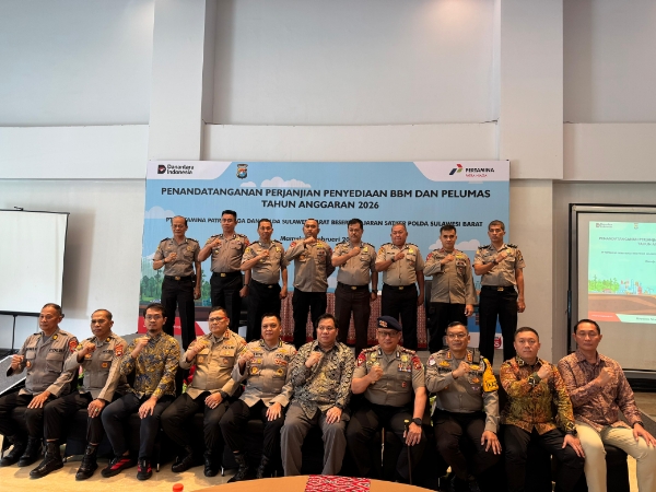 MAMUJU – Sinergi antara kepolisian dan badan usaha milik negara semakin diperkuat! Polda Sulawesi Barat bersama PT Pertamina Patra Niaga resmi menandatangani Perjanjian Penyediaan Bahan Bakar Minyak (BBM) Tahun Anggaran 2026, Selasa (3/2/26) di Ballroom Hotel Maleo, Mamuju.