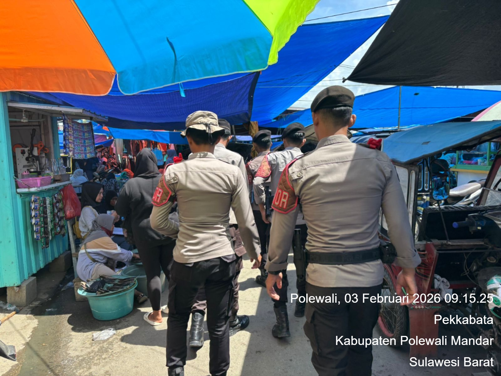 POLRES POLMAN – Satgas Preventif Operasi Keselamatan Marano 2026 melaksanakan patroli dan pengaturan lalu lintas di Pasar Sentral Pekkabata, Kabupaten Polewali Mandar, Sulawesi Barat, Selasa (3/2/2026).