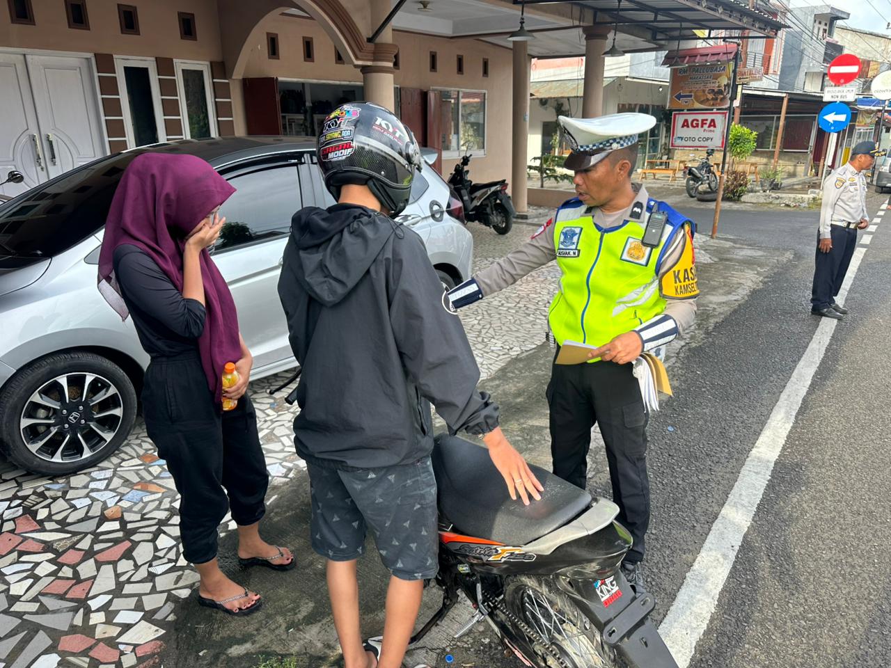 Para pengendara tersebut kemudian dihentikan secara persuasif oleh personel Satgas Preventif. Petugas tidak serta-merta melakukan penindakan, melainkan memberikan teguran secara humanis disertai edukasi dan imbauan agar senantiasa mematuhi aturan lalu lintas demi keselamatan diri sendiri maupun pengguna jalan lainnya.