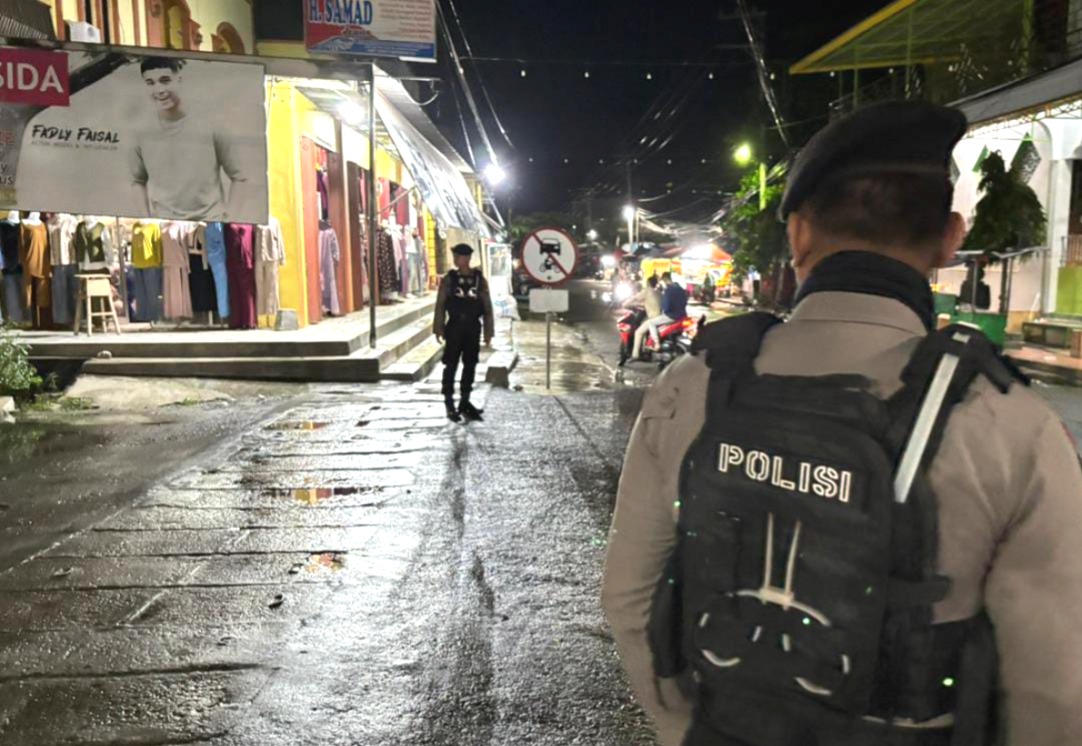 Kegiatan patroli tersebut dipimpin langsung oleh Aiptu Awaluddin dan dilaksanakan sebagai langkah preventif untuk menciptakan rasa aman dan nyaman bagi masyarakat, terutama pedagang dan pengunjung pasar yang masih beraktivitas pada malam hari.